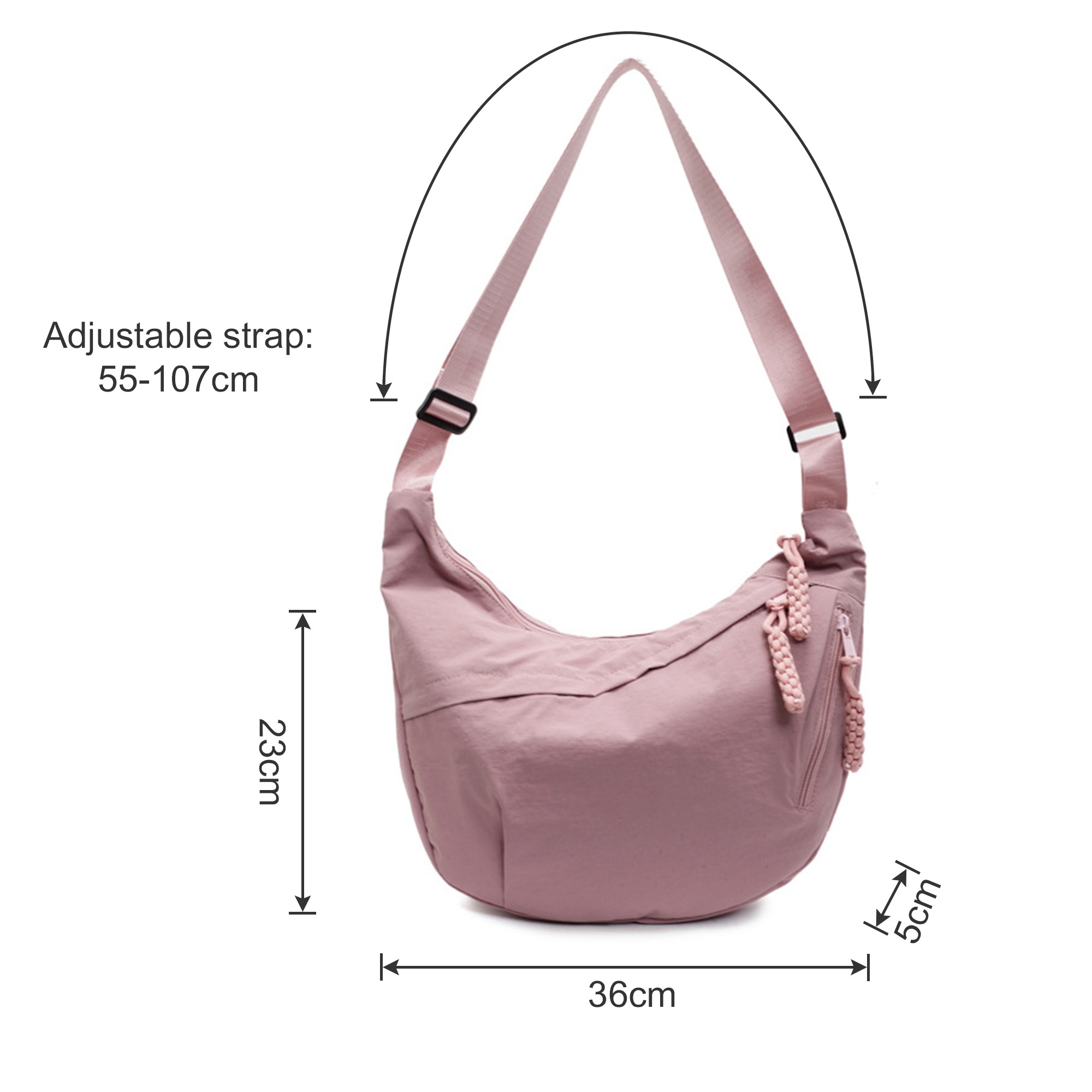 Dumpling Crossbody Bag is a stylish and functional promotional bag crafted from durable Oxford material, designed to keep essentials organised and within easy reach. Its unique dumpling silhouette features three zipper pockets for versatile storage, an adjustable shoulder strap for comfort and a water-resistant finish — making it perfect for everyday use, events, travel or branded giveaways.